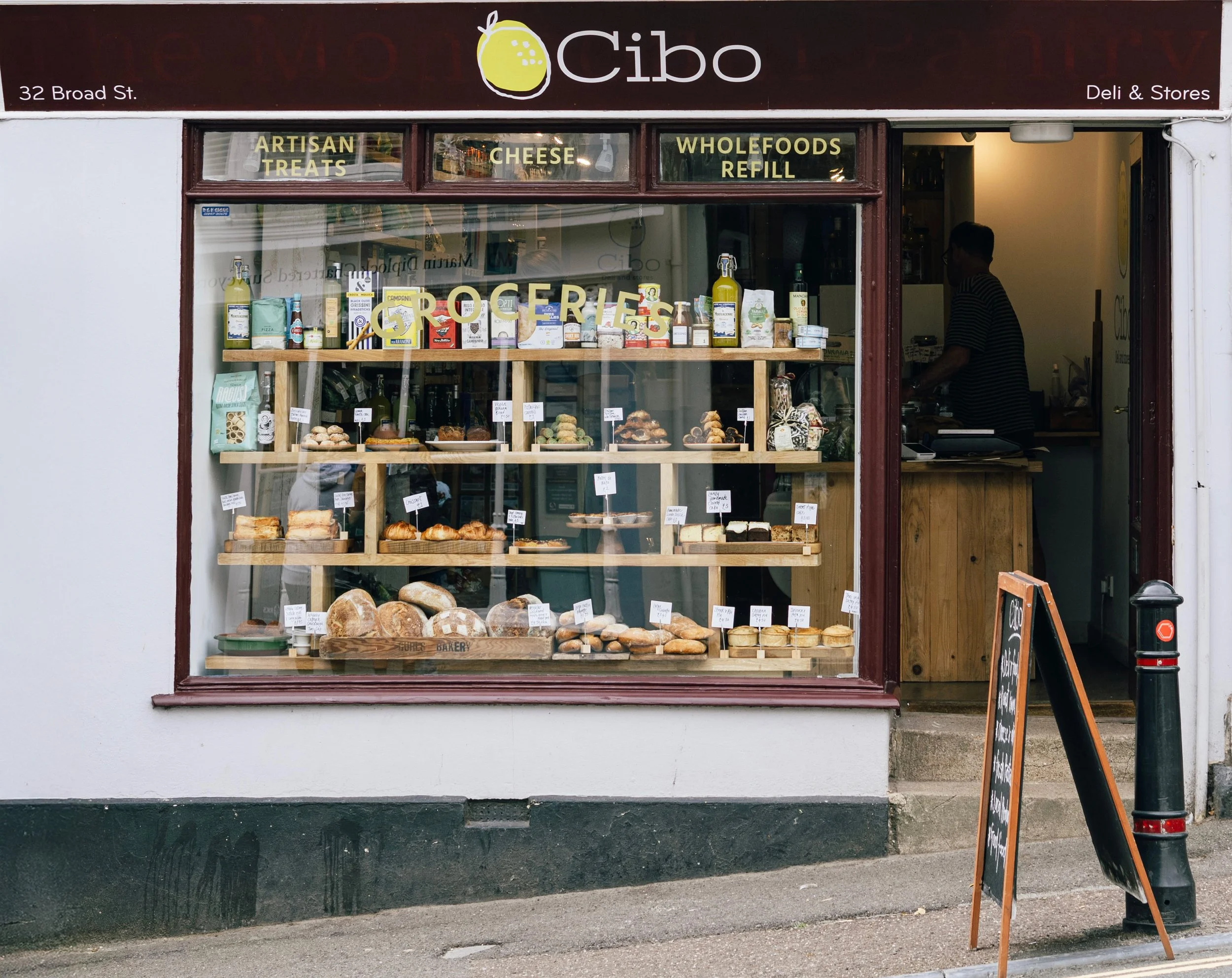 Cibo Deli & Stores (top of high street), very friendly and happy to help with any queries, offering organic and locally grown fruit and veg, freshly baked sourdough, with a cheese counter celebrating the best local & British cheeses, olives & charcuterie.